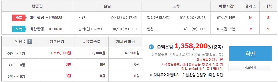 • 왕복 항공료 및 유류할증료&택스