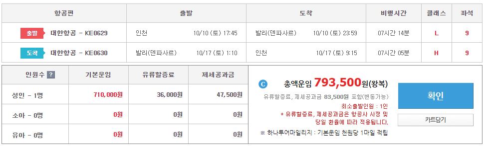• 왕복 항공료 및 유류할증료&택스