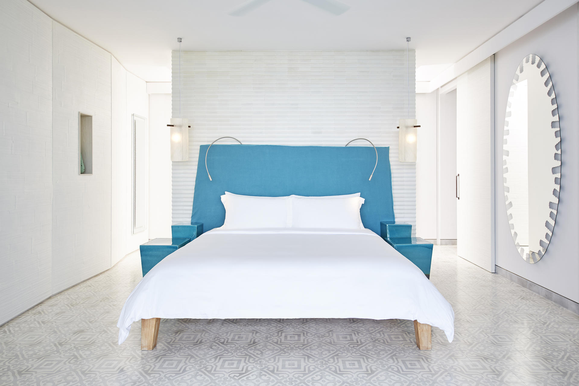 - 객실은 전체적으로 화이트톤에 블루 컬러로 포인트를 주어 산뜻하고 청량한 분위기를 자아내며, 타일로 꾸며진 예쁜 욕실에는 깊은 욕조도 있다. 이곳은 독특하게도 이탈리아의 디자이너가 호텔 설계에 참여하여 디자인적인 측면에서 높은 평가를 받는다.