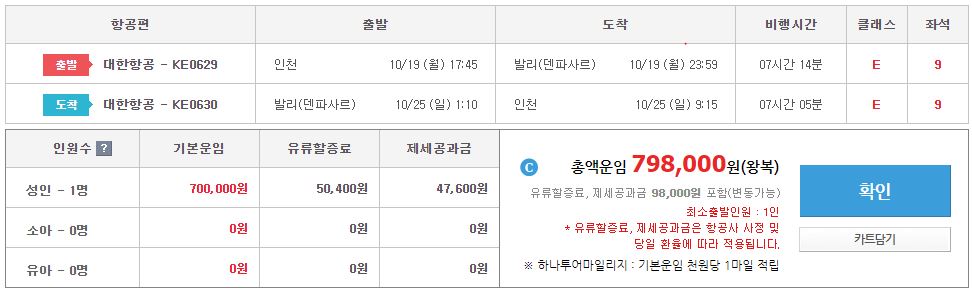 1. 항공편 - 가루다항공 / 대한항공 중 택1